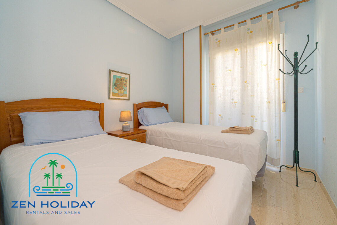 The apartment has everything just a few steps away: bars, restaurants, supermarkets, the beach, and public transport. In addition, right next to the building you will find El Campello’s municipal park, perfect for spending time with children.