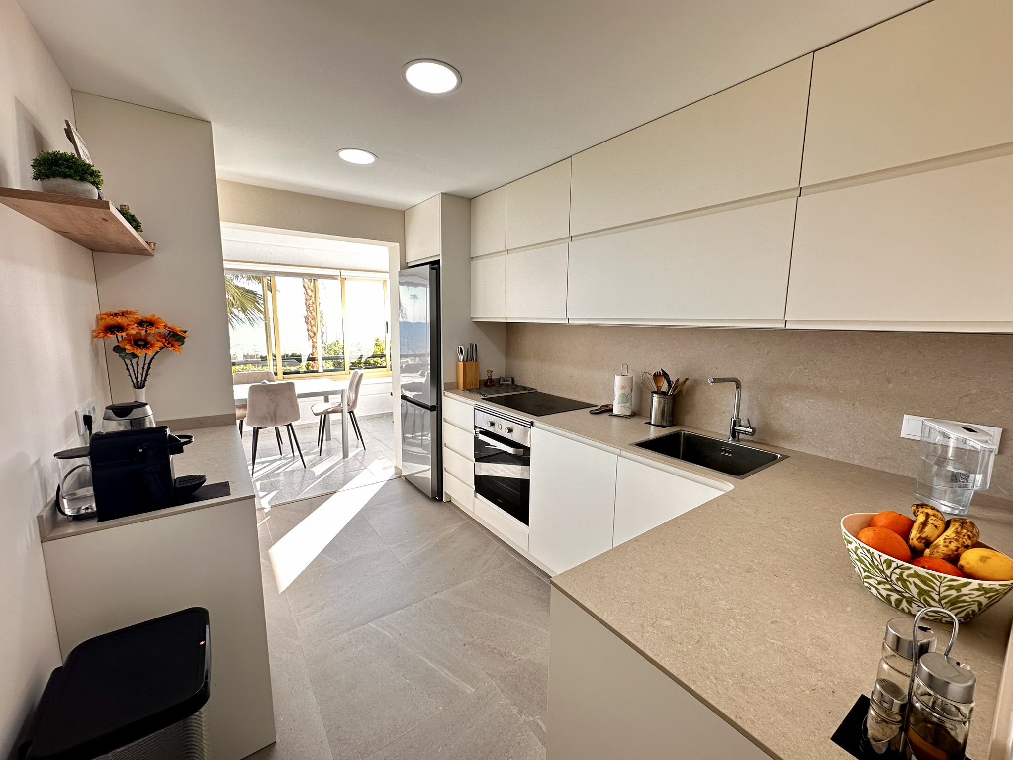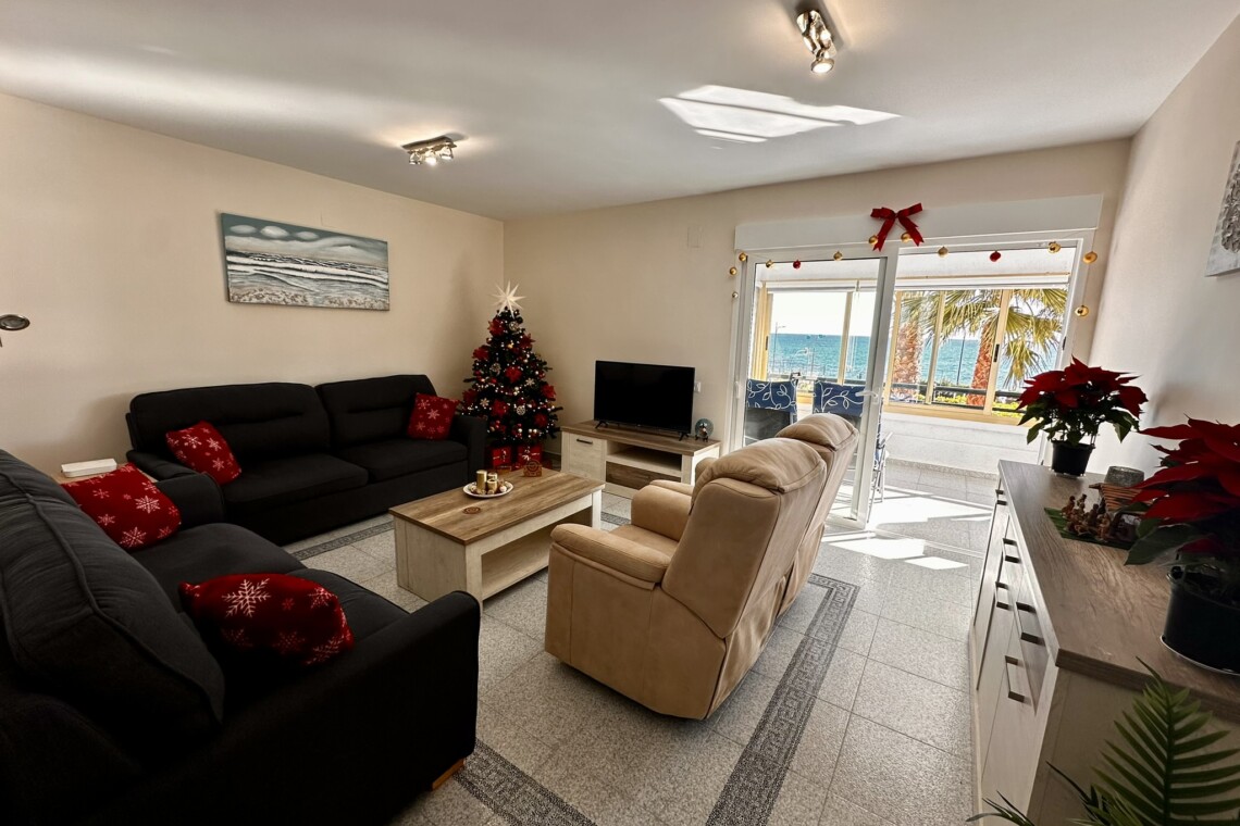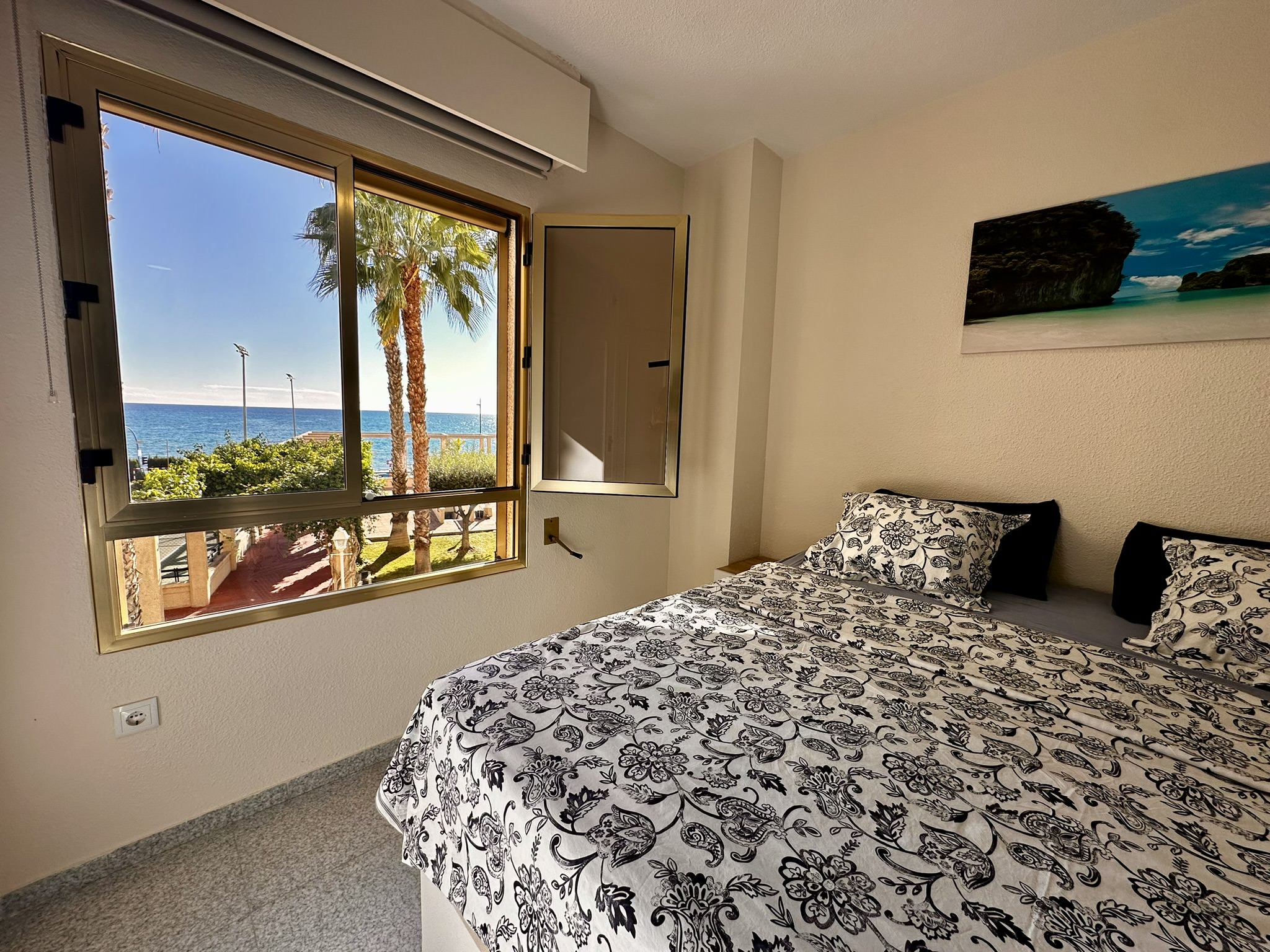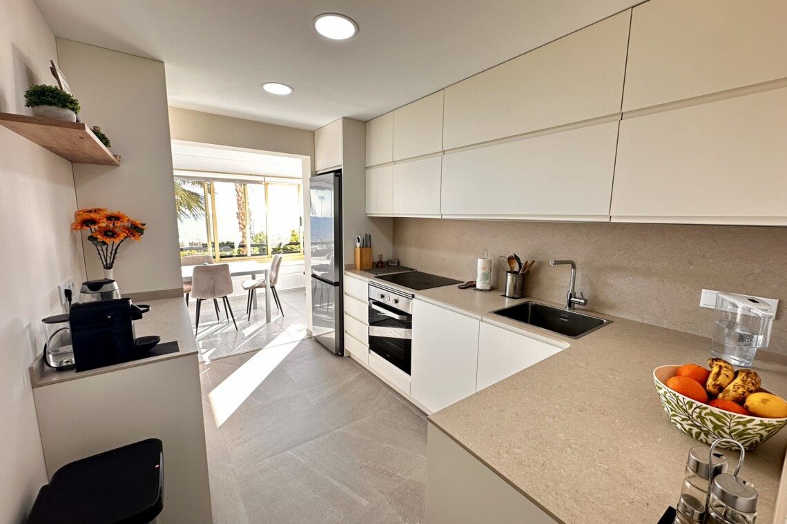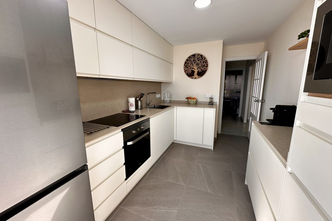 El interior de la vivienda ofrece 3 habitaciones amplias y luminosas, con vistas al mar, y 2 baños modernos completamente equipados. El salón, acogedor y lleno de luz, se abre a una gran terraza con impresionantes vistas al Mediterráneo. La cocina, moderna y totalmente equipada, ha sido reformada con los mejores acabados para tu comodidad.