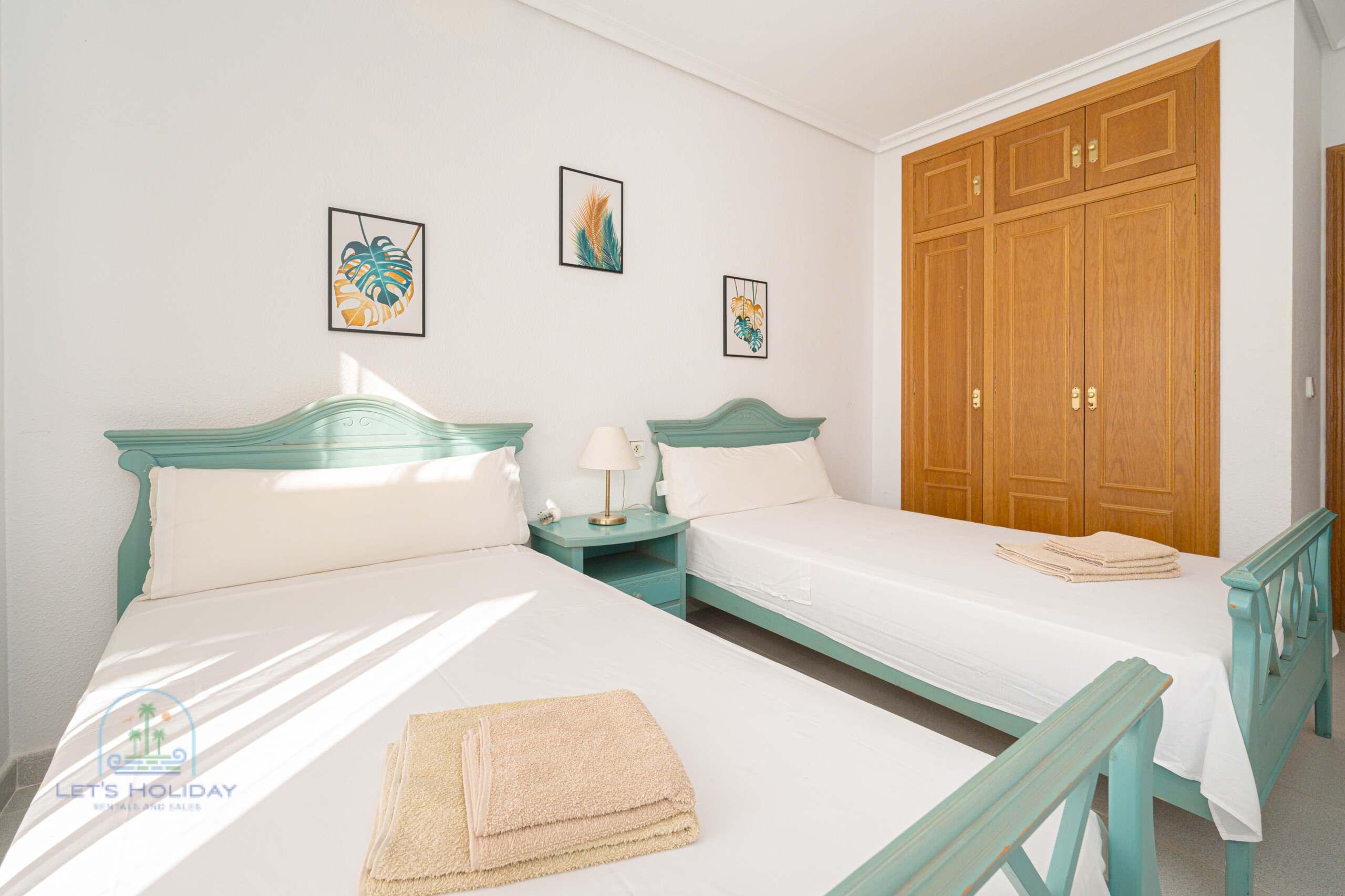 El segundo dormitorio dispone de dos camas individuales y armarios empotrados.