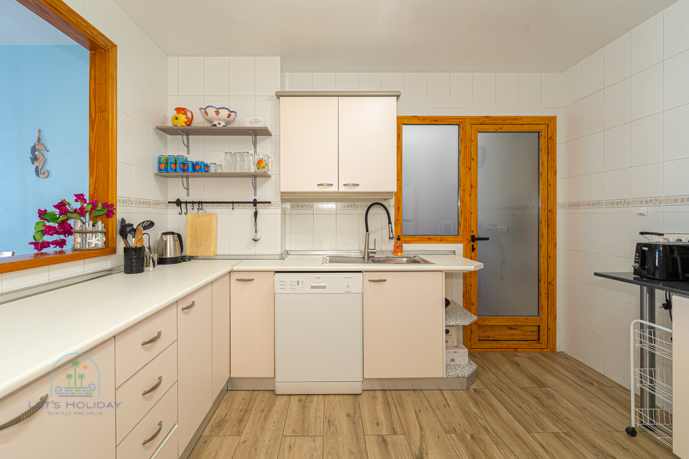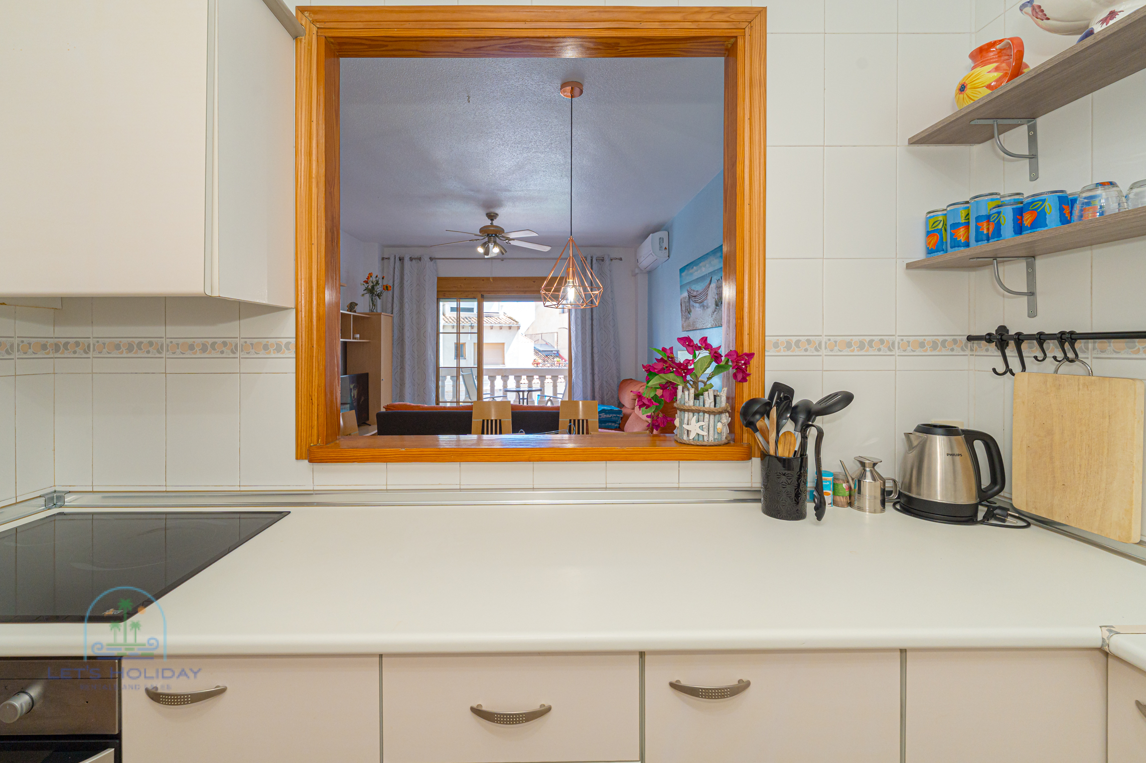 La vivienda dispone de aire acondicionado en el salón y en el dormitorio principal, lo que garantiza confort durante todo el año. La cocina está completamente equipada con todo lo necesario para estancias cortas o largas, y el pequeño patio interior ofrece un rincón tranquilo ideal para relajarse o tomar un café.