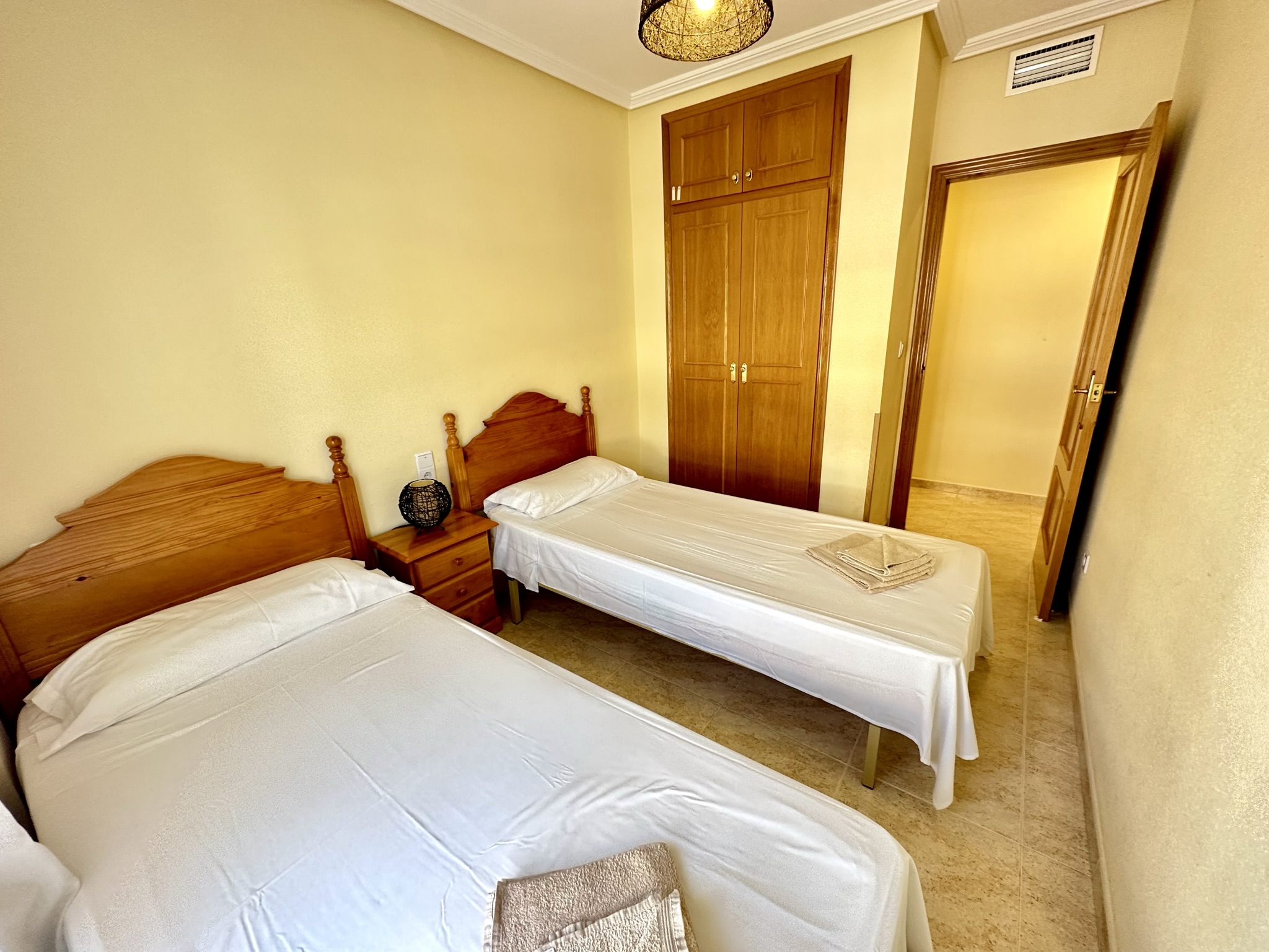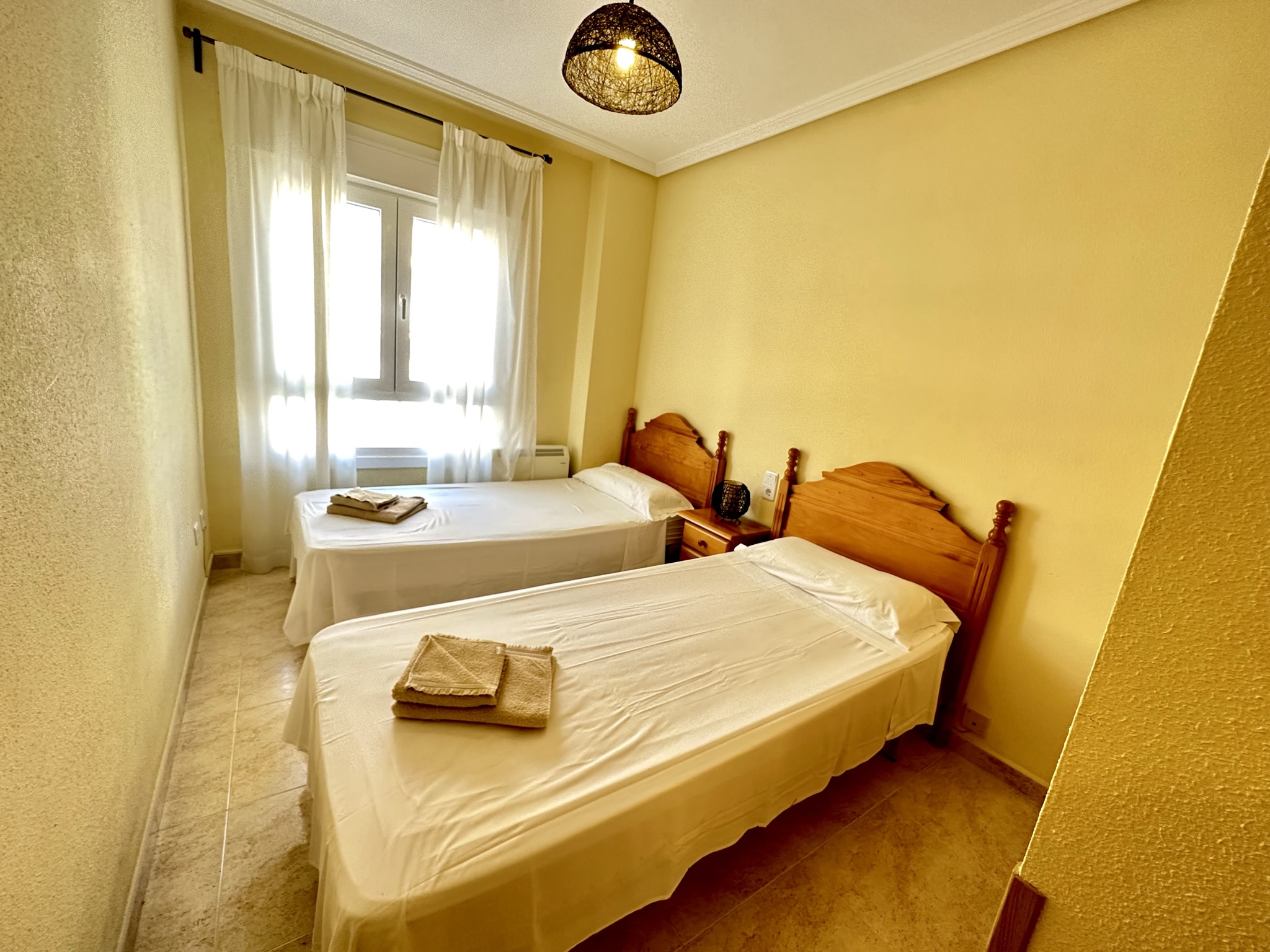 El apartamento cuenta con 2 cómodos dormitorios y 2 baños completos, además de un amplio salón-comedor con capacidad para 4 personas. Está equipado con internet de alta velocidad, aire acondicionado centralizado que garantiza una estancia fresca y agradable, y una plaza de aparcamiento privada.