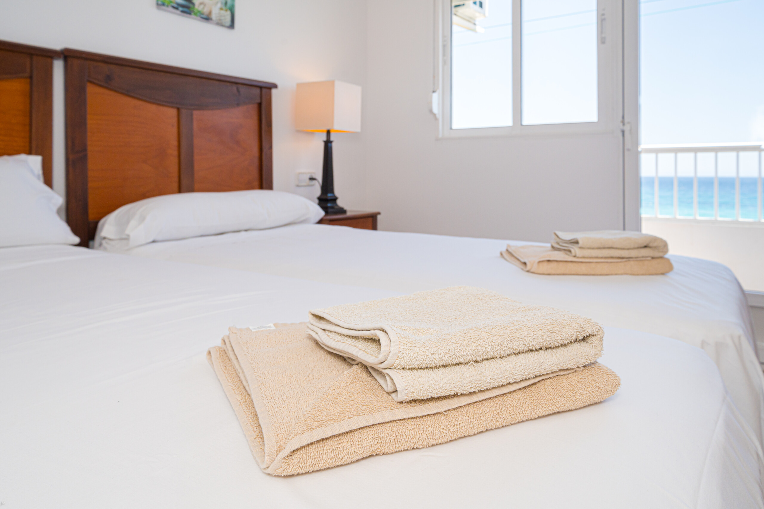 Fantástico dúplex de dos habitaciones frente al mar, con unas vistas estupendas en primera línea de la playa Almadraba. Completamente equipado y listo para tus vacaciones.