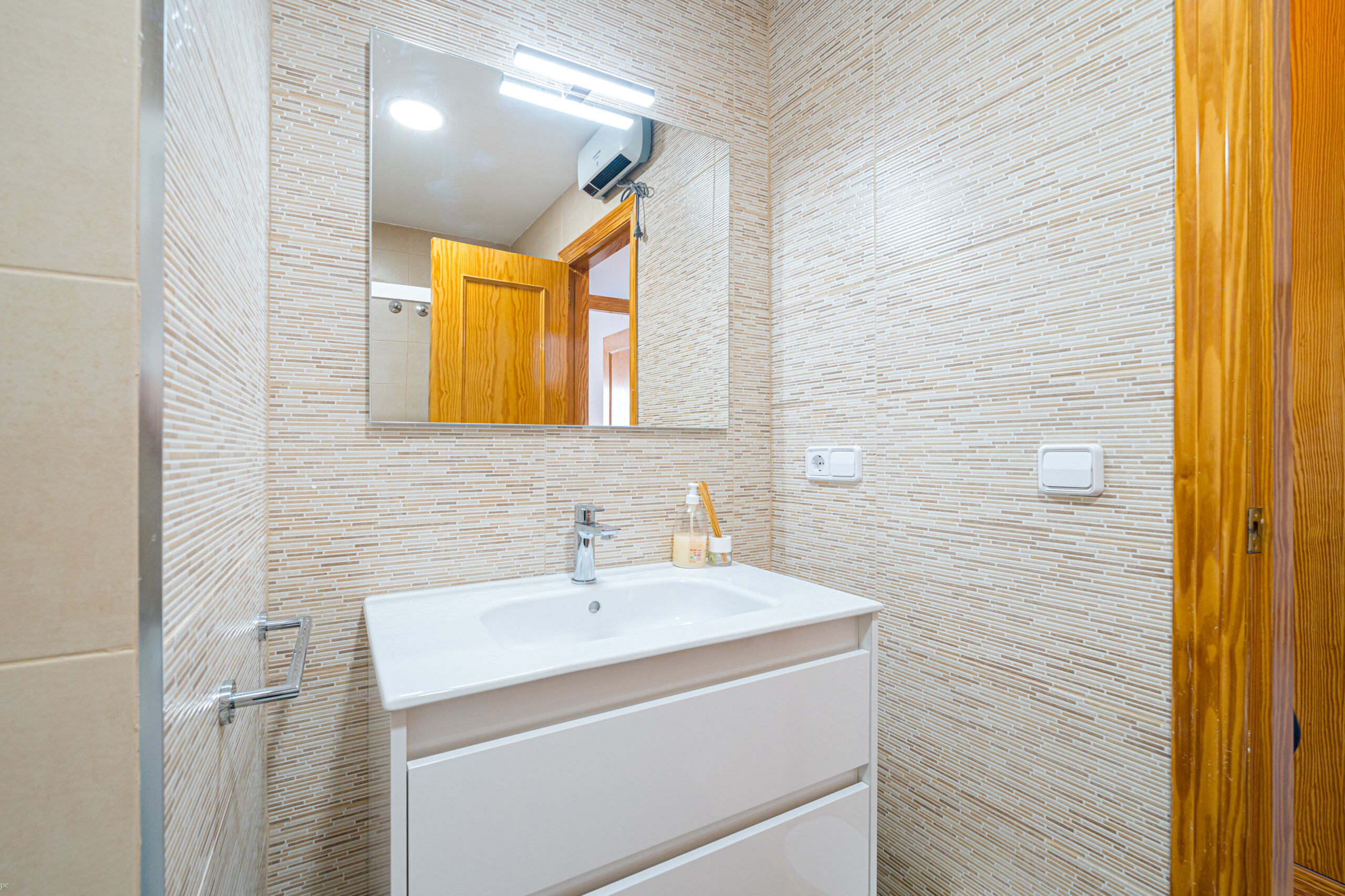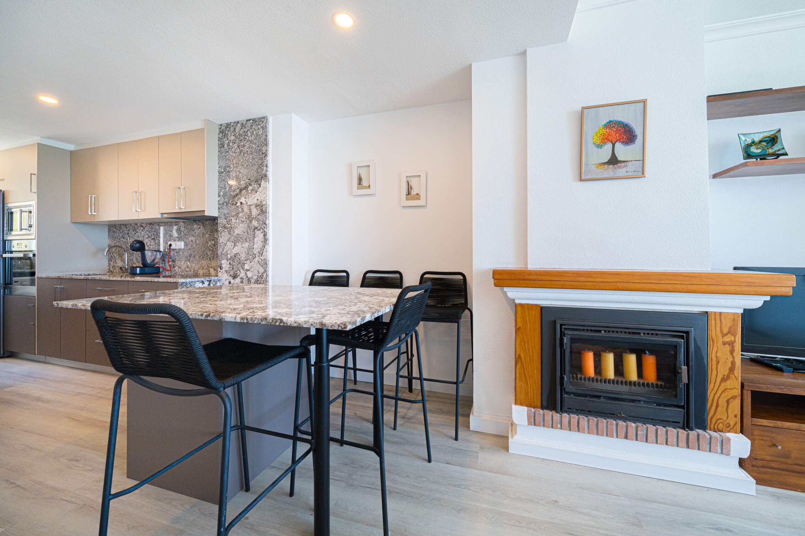 En la planta baja encontrarás el salón con cocina americana recién reformada, así como un aseo. Subiendo a la segunda planta, hallarás dos habitaciones y un baño completo. El dúplex está equipado con AC en toda la casa.