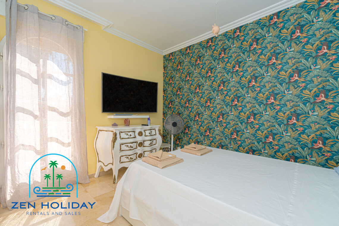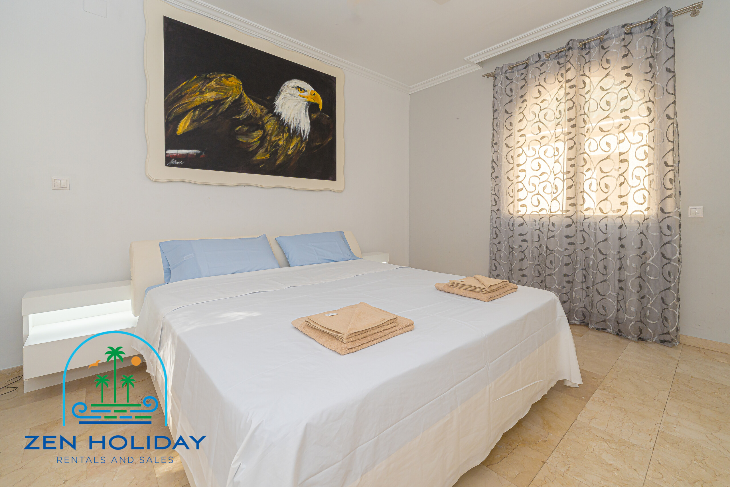 The property features a bright living-dining room with air conditioning, a fully equipped kitchen, and 3 full bathrooms.