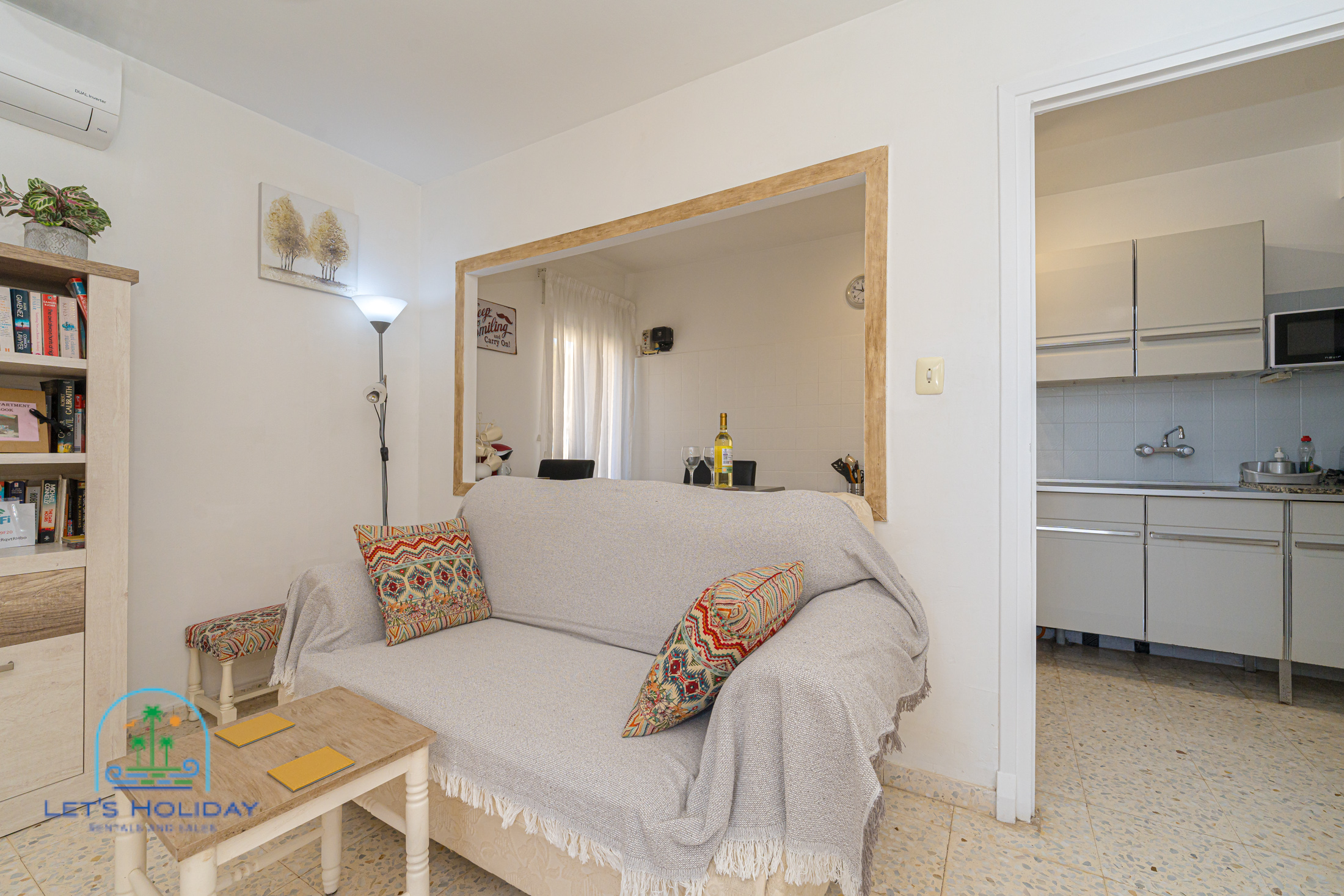 This charming apartment is ideal for couples seeking a relaxing getaway by the sea. It features a bedroom with a double bed, a cozy living room, a fully equipped kitchen, a bathroom, a terrace, a patio, and a shared pool. Located just 60 meters from the beautiful sandy Cala Mig cove, it’s the perfect spot to enjoy peace and the sound of the waves.