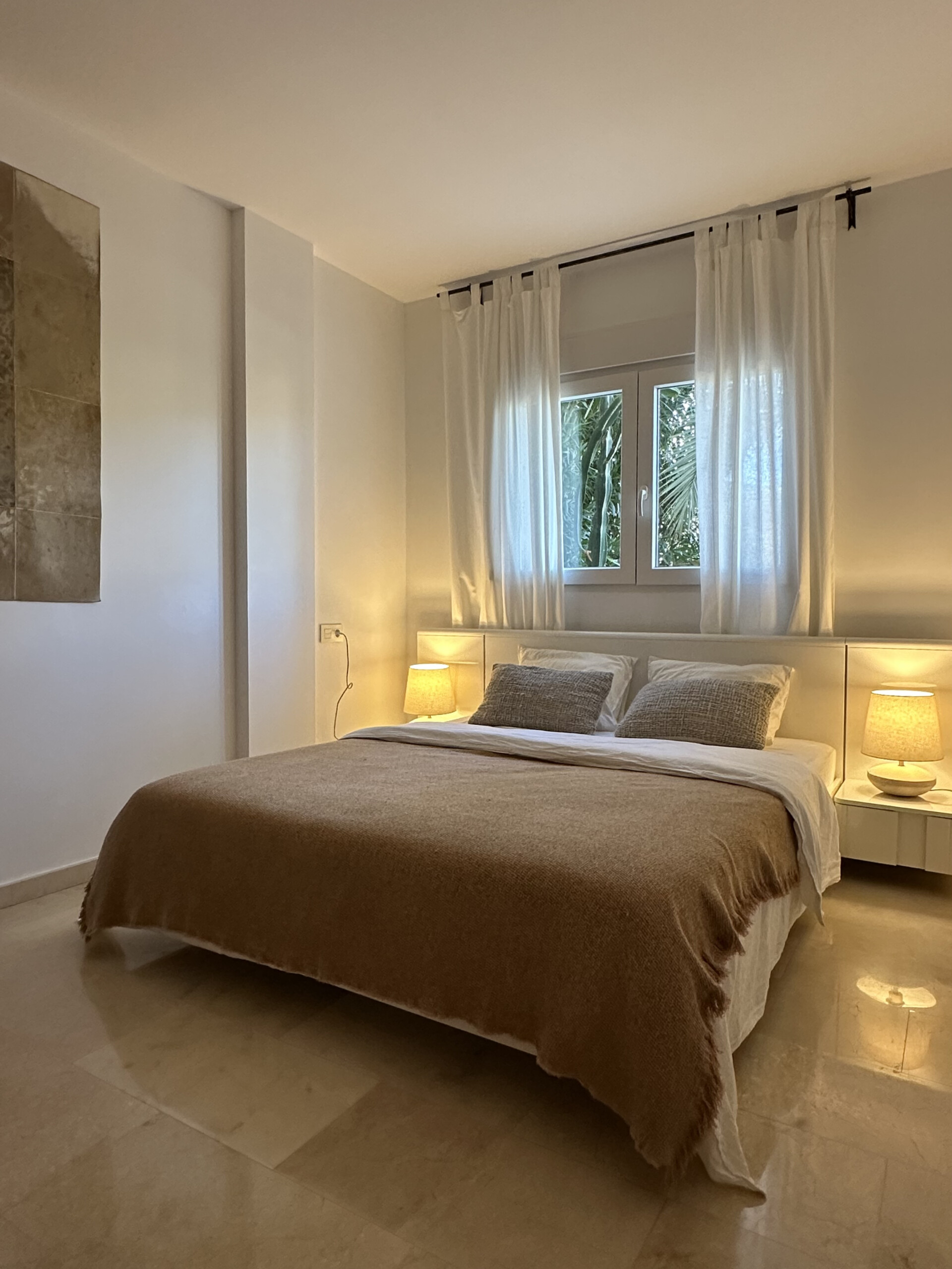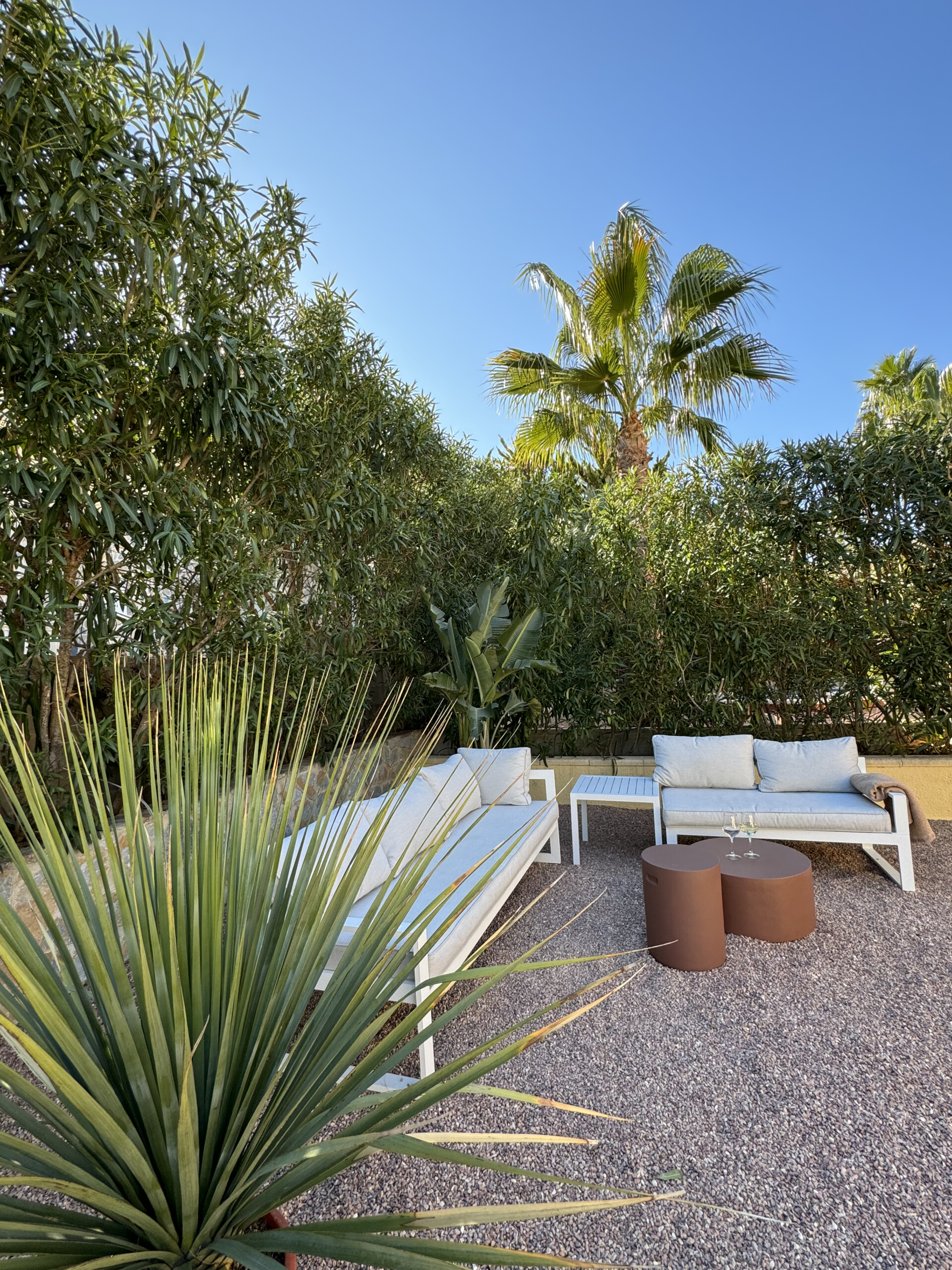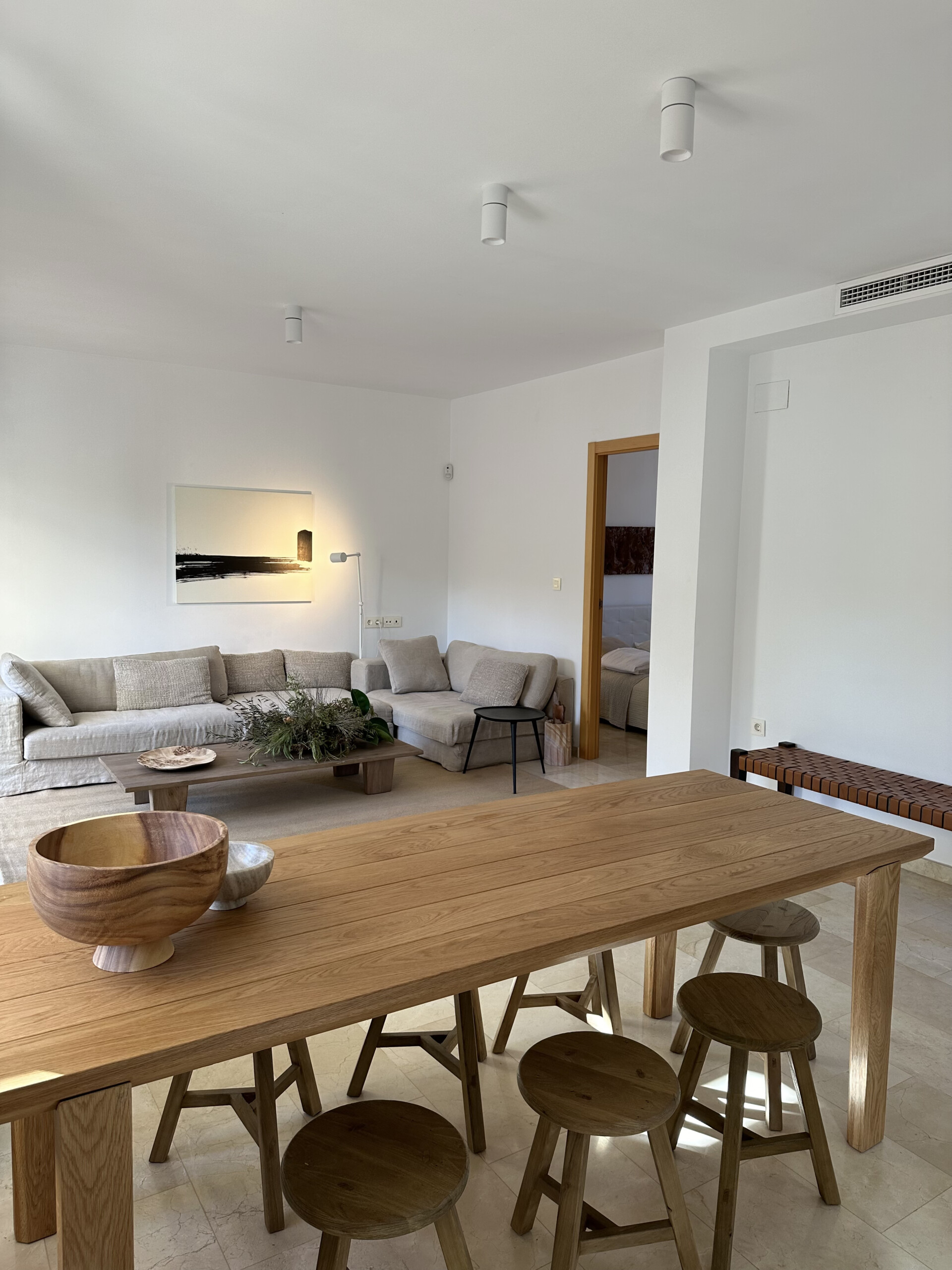 Villa Amarilla es una casa diseñada en un estilo moderno español que ofrece una experiencia única y lujosa. Cuenta con 4 dormitorios, 3 baños completos, 1 aseo, 2 terrazas y un salón abierto con cocina. Desde el salón se accede a la terraza, donde encontrarás una barbacoa, una mesa de comedor y un sofá junto a la piscina privada. Los muebles son de la más alta calidad, diseñados por reconocidos creadores internacionales como Emmanuel Gallina y Vincent Van Duysen. Los colores claros que reflejan el entorno natural, junto con materiales y tejidos suaves y naturales como cuero genuino, lino, madera, mármol y piedras, proporcionan un ambiente elegante y confortable.