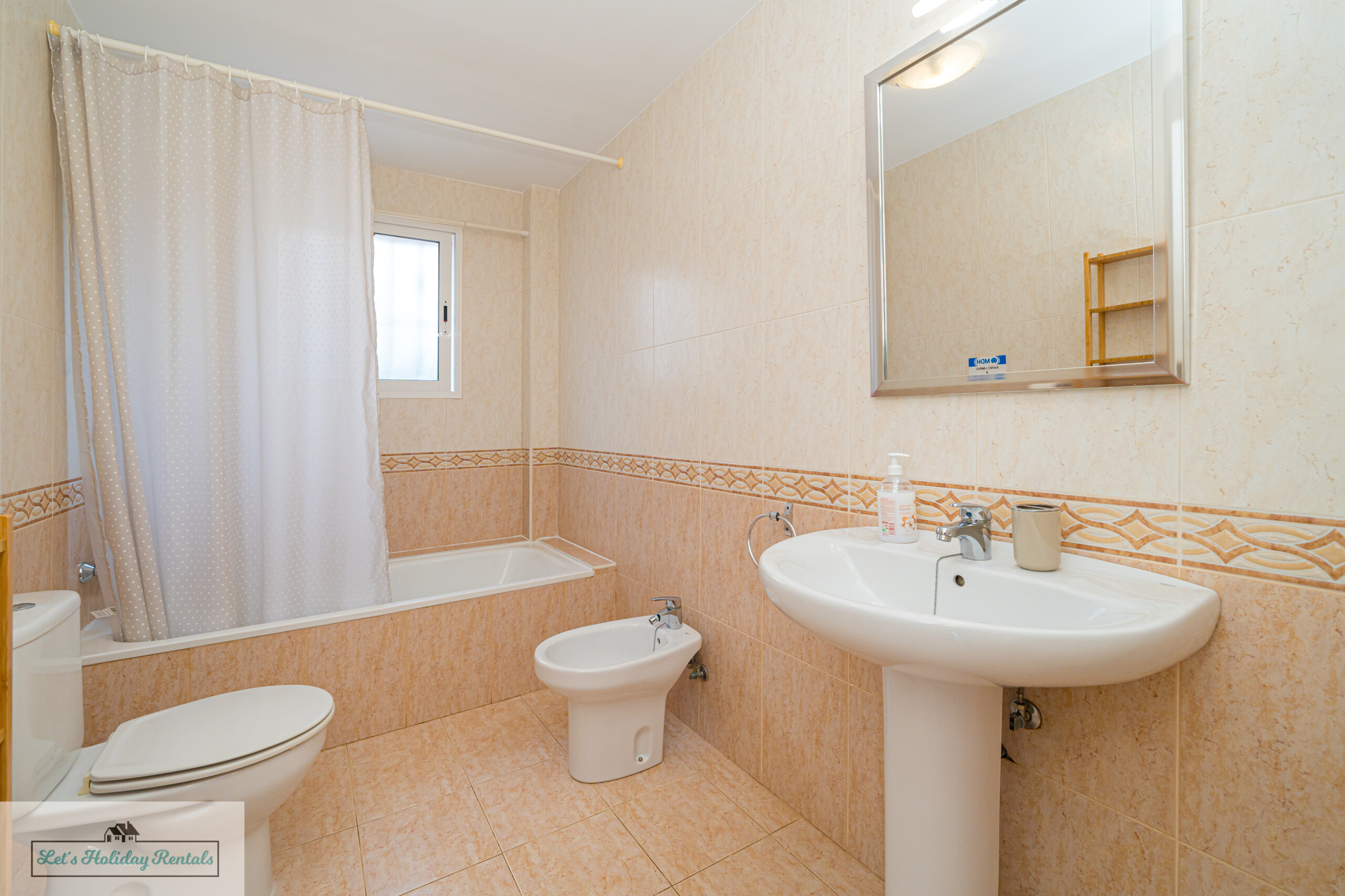 Villa independiente , perfecta para pasar tus vacaciones al lado de tu familia. Toda la propiedad es privada. La casa dispone de 3 dormitorios ( 2 con cama doble , 1 dormitorio con 2 camas individuales ) , salon-comedor,aire acondacionado en todos los dormitorios y tambien en el salon, piscina privada , barbacoa, terraza con mesa para comer cubierta por un toldo de 3 metros.