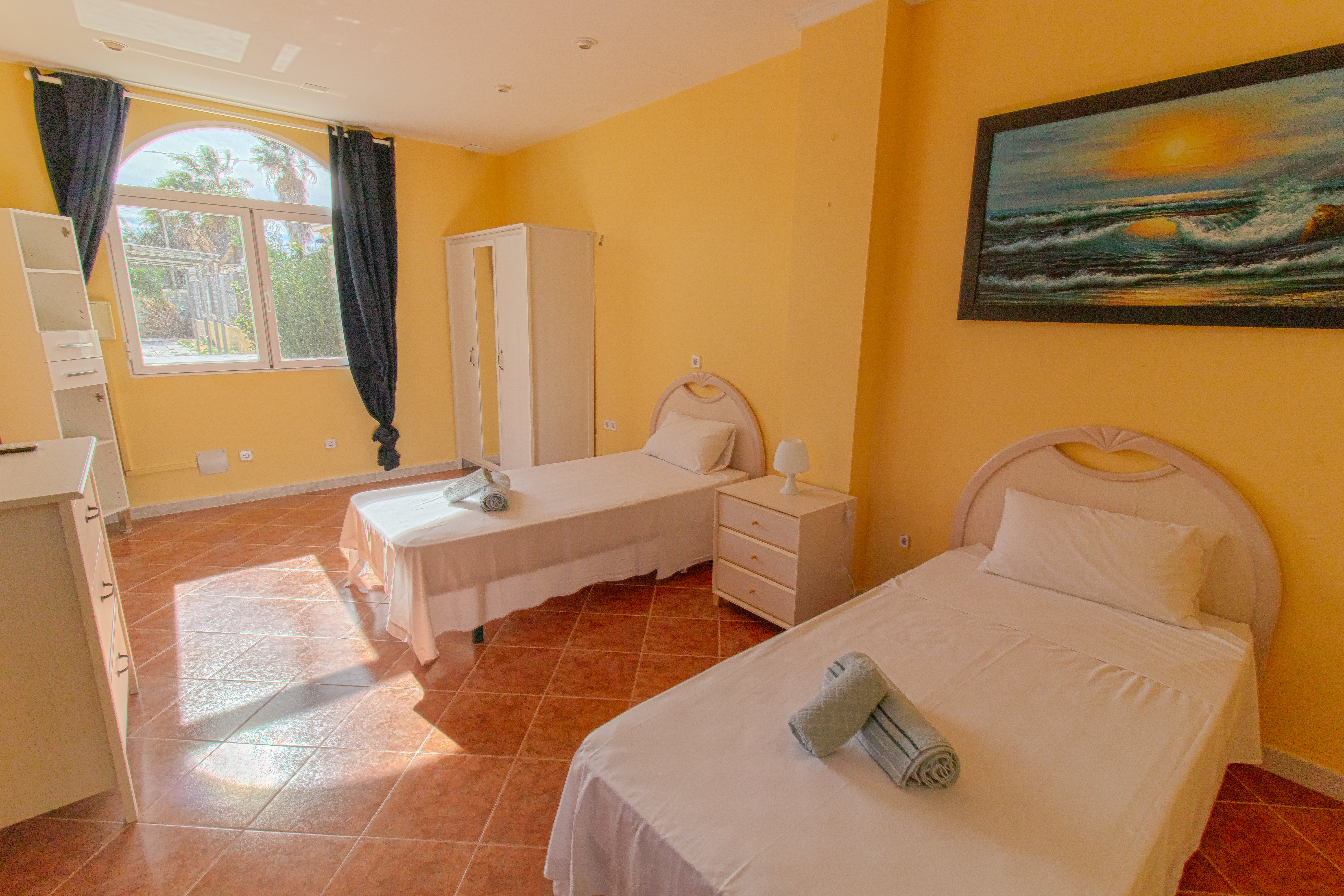 - En el exterior, hay un dormitorio independiente con 2 camas individuales y su propio baño.