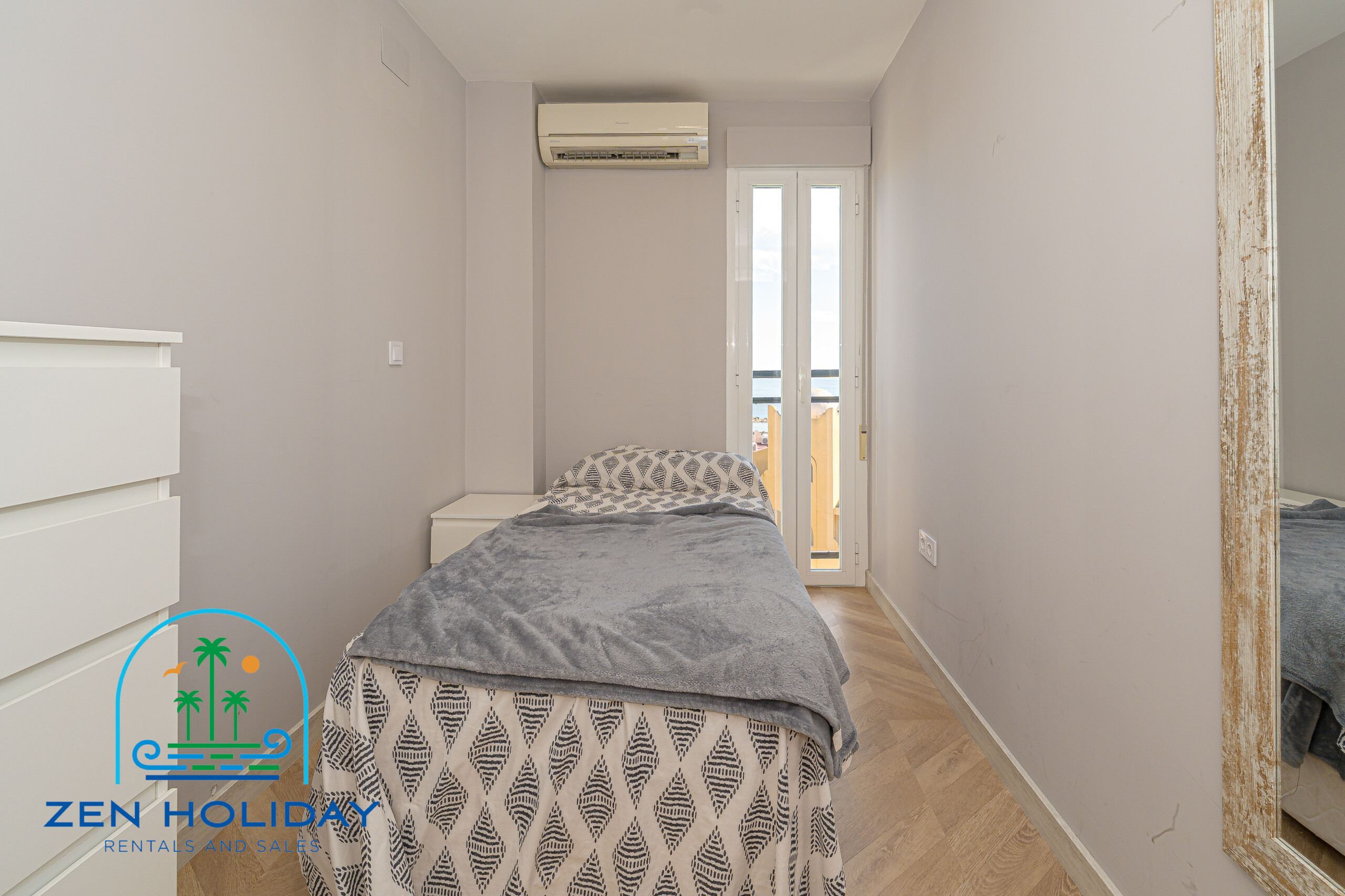 With 73 m² built area, it includes two bedrooms, one stylish bathroom, air conditioning, and comes fully furnished.