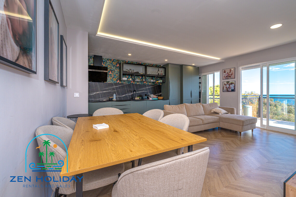 This bright, fully renovated penthouse blends modern comfort with Mediterranean charm. Every room offers open sea views, creating a peaceful and elegant atmosphere.