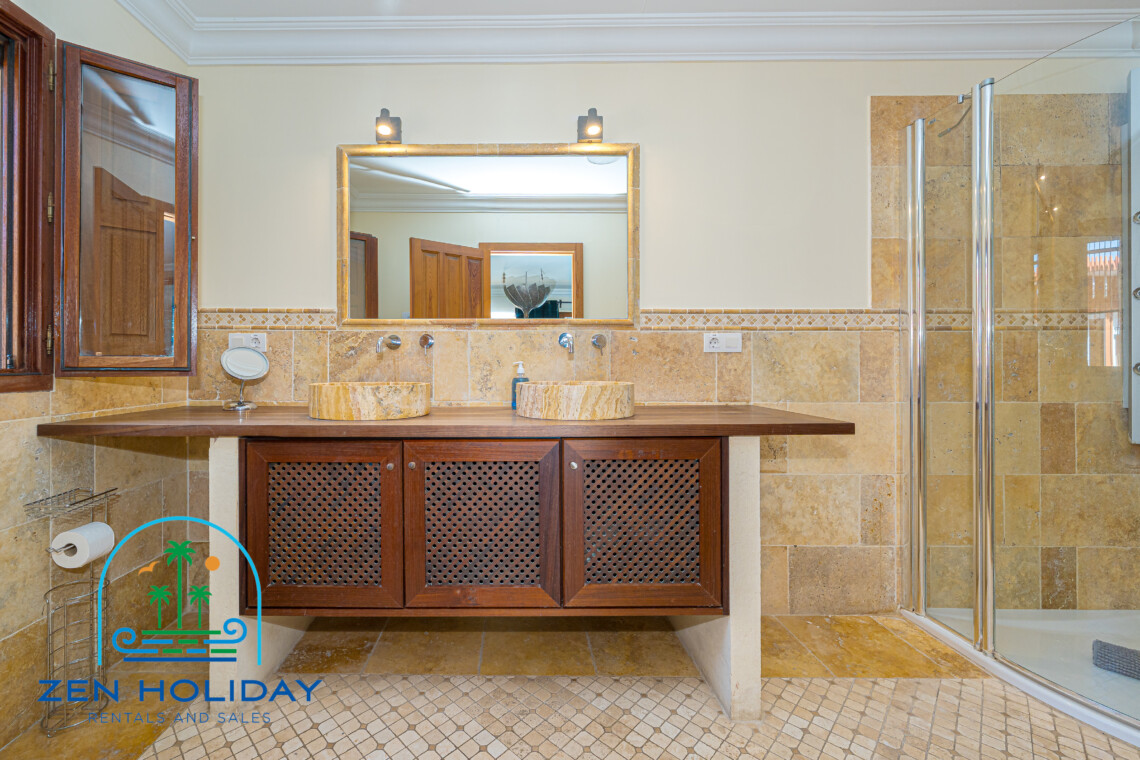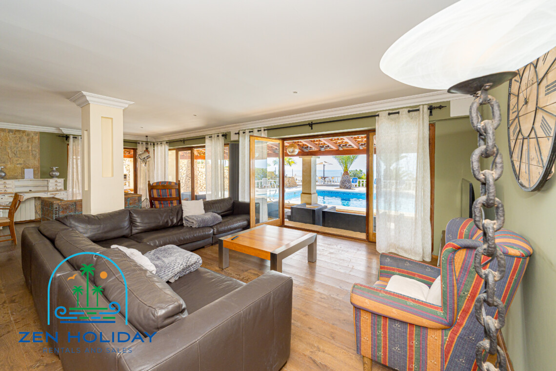 The villa features 6 bedrooms and spacious living areas, carefully distributed to provide both comfort and functionality. Outside, the property offers everything needed to fully enjoy the Mediterranean climate: a private swimming pool, large terraces, barbecue area, and chill-out spaces with open sea views.
